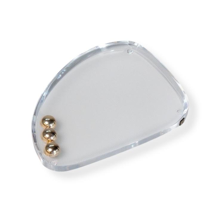 Com um design elegante e contemporâneo, nossa bandeja de acrílico é o toque de sofisticação que faltava na sua decoração. Produzida em acrílico transparente de alta qualidade, ela traz um formato orgânico moderno e conta com esferas metálicas douradas que adicionam charme e exclusividade à peça.