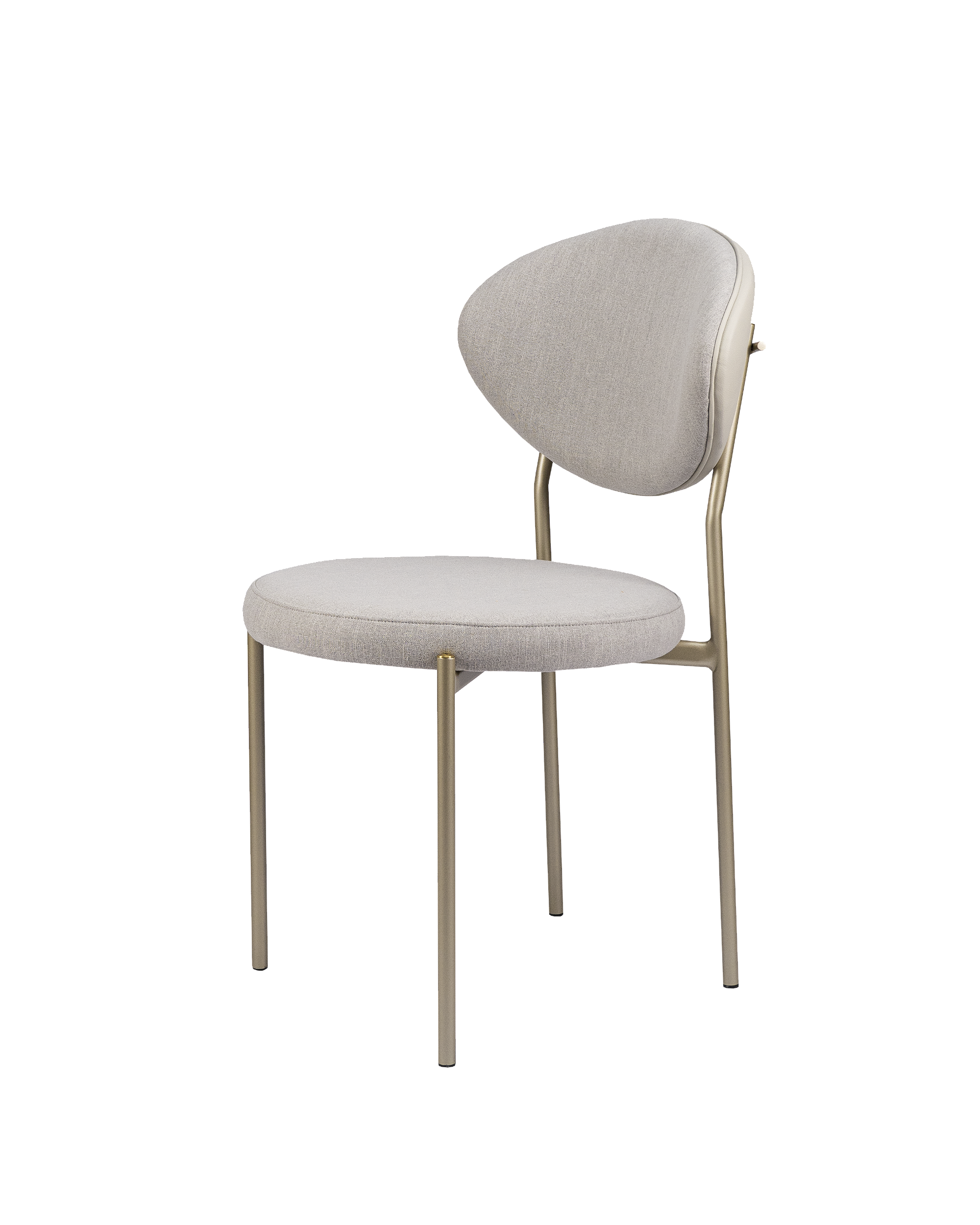 Cadeira com assento e encosto estofado. Estrutura em aço carbono pintado.