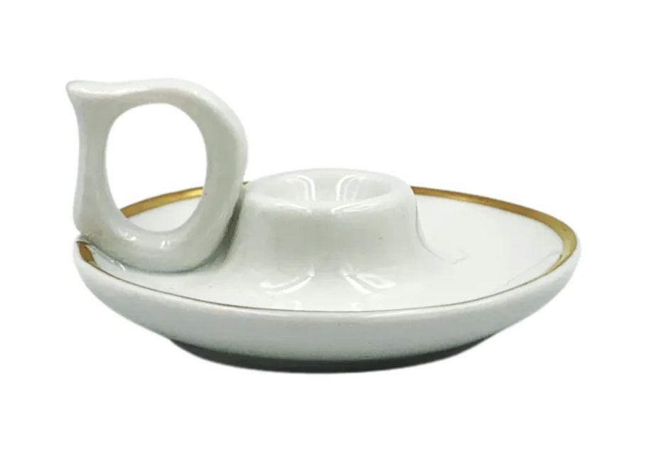 Castiçal de porcelana com filete ouro para decorar a mesa posta, uma mesa lateral, iluminar todos os cantinhos da casa e da festa e presentear.