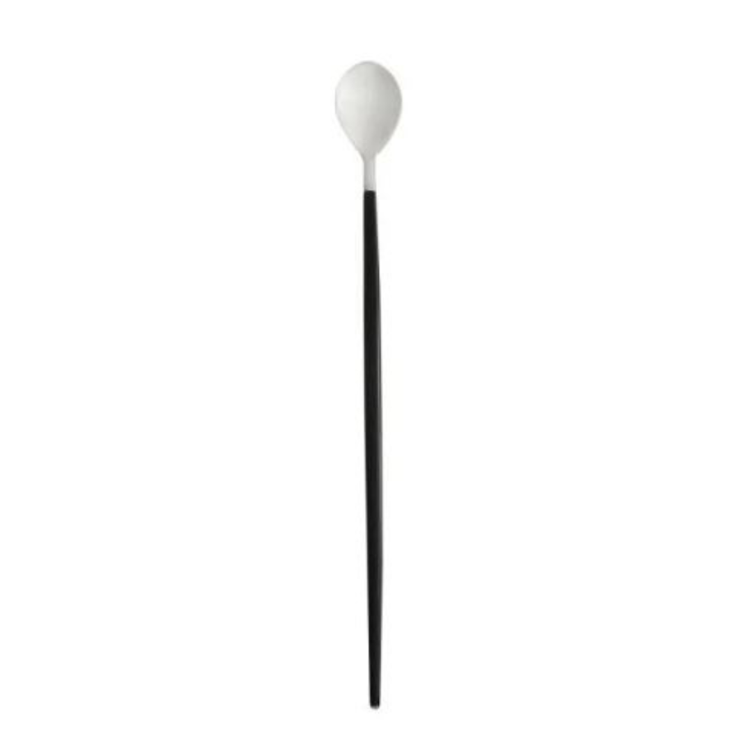 Colher de aço inox bailarina na cor inox e cabo preto de 30cm.
