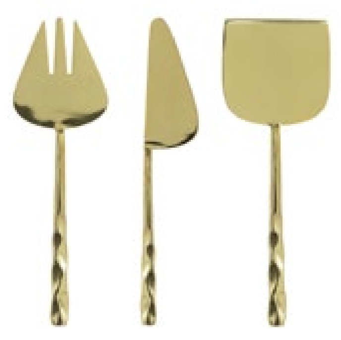 Conjunto com 3 facas em aço inox na cor dourada para queijo. O conjunto ideal para compor sua mesa posta ou até mesmo presentear alguem.