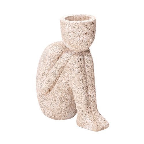 Escultura/vaso em formato de uma pessoa em poliresina na cor cru.