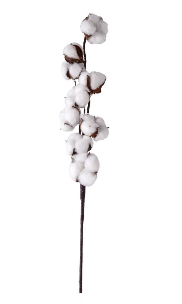 Galhos com flores de algodão artificial.