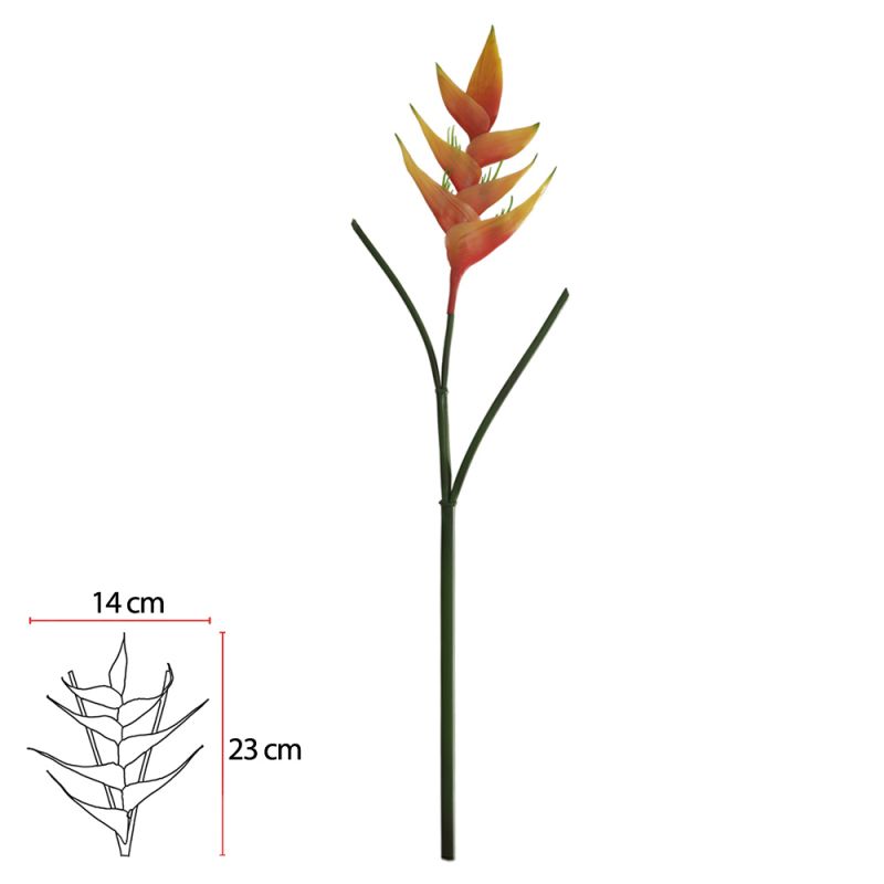 Com seu formato tropical e cor vibrante, a helicônia artificial traz vida e personalidade a arranjos e composições botânicas. Seu acabamento com toque real oferece um visual autêntico e sofisticado.