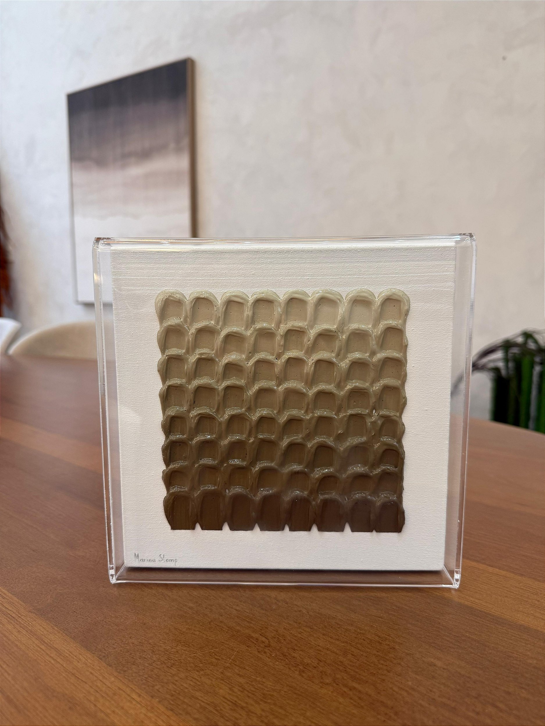 Arte contemporânea com toque real em relevo. A composição orgânica e o degradê neutro trazem leveza e sofisticação para ambientes modernos e minimalistas.