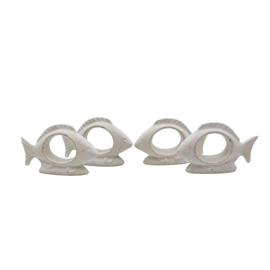 Porta guardanapos de peixe de cerâmica na cor branco fosco - 2 PEÇAS.