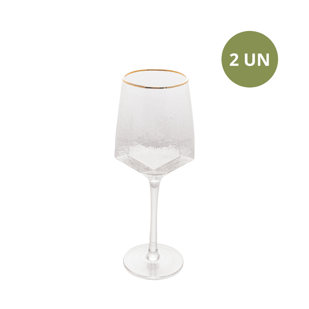 Set com 2 Taças para vinho de cristal de chumbo com fio de ouro com design moderno.