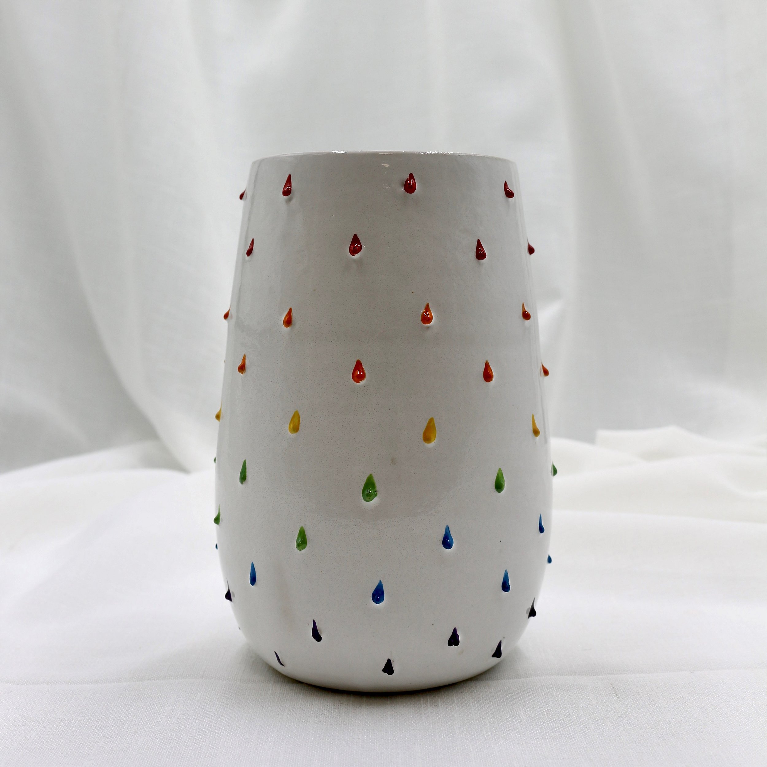 Material: Cerâmica queimada em alta temperatura com várias gotinhas pintadas formando um arco íris.